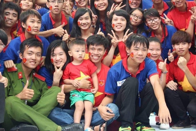 Anh Hoàng - người bế em bé - nguyên Phó trưởng ban Tổ chức chương trình “Tiếp sức mùa thi” TP.HCM nhiều năm liền