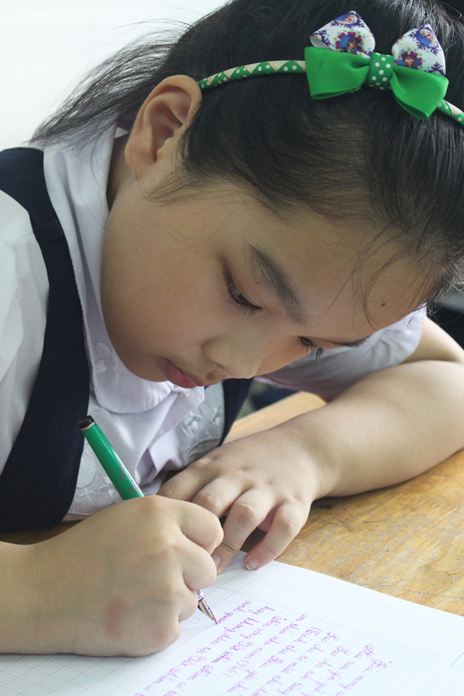 Chỉ sau hơn 10 phút, các em di chuyển về phòng thi, tiến hành thực hiện bài dự thi của mình. Tại đây, không khó để Ban tổ chức có thể bắt gặp những gương mặt ưu tú, “những bông hoa đẹp” trong vườn hoa rèn chữ của quận nhà.