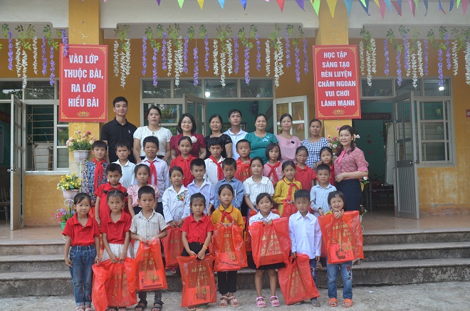 Báo Công lý và Tập đoàn Thiên Long tặng quà cho học sinh Trường Tiểu học xã Đồng Thắng