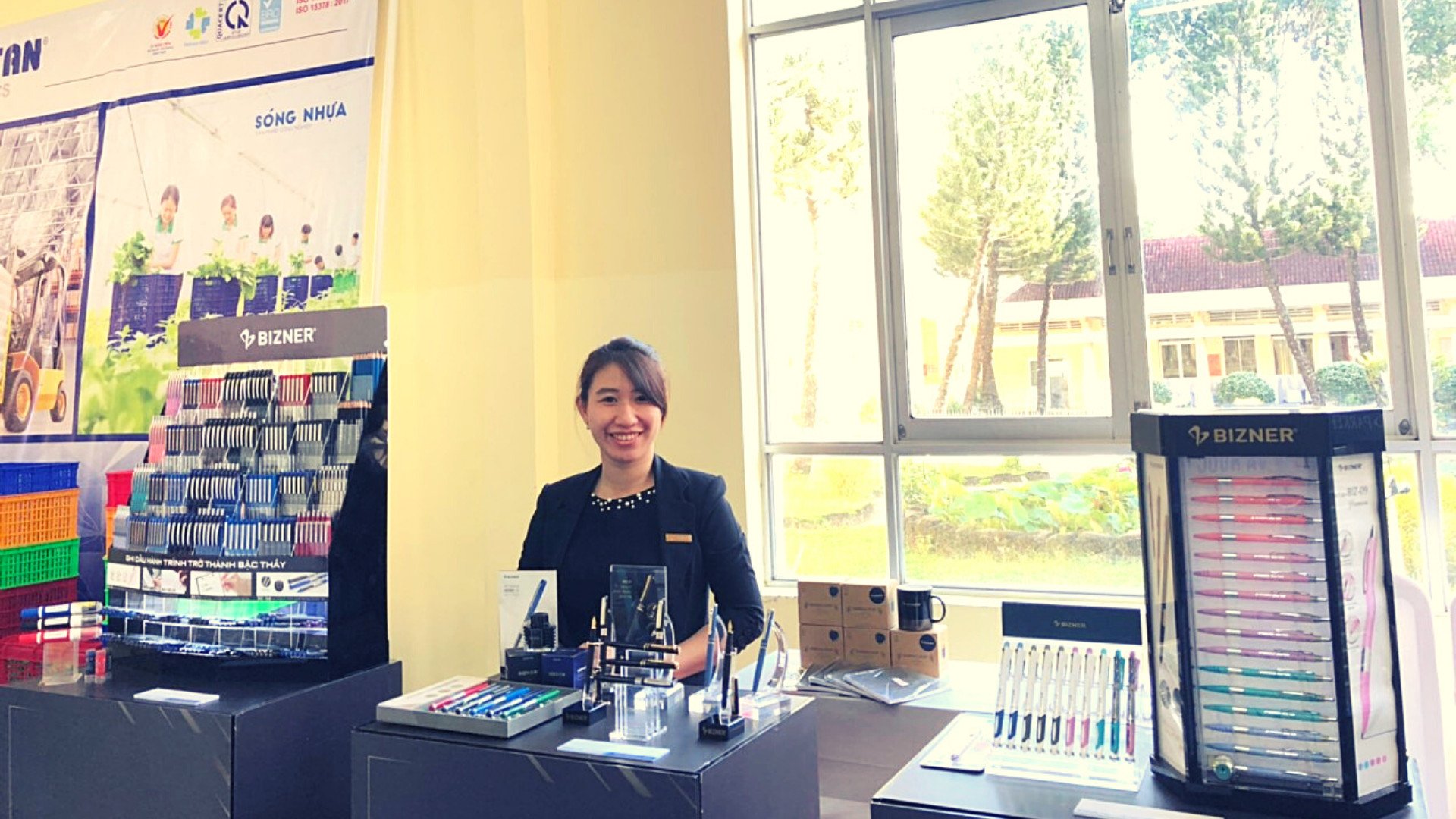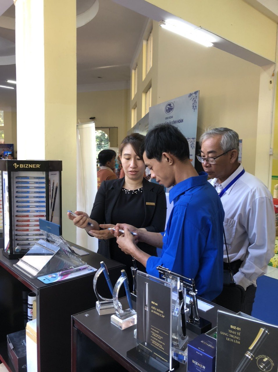 Gian hàng trưng bày của Bizner nổi bật với các loại bút và văn phòng phẩm cao cấp