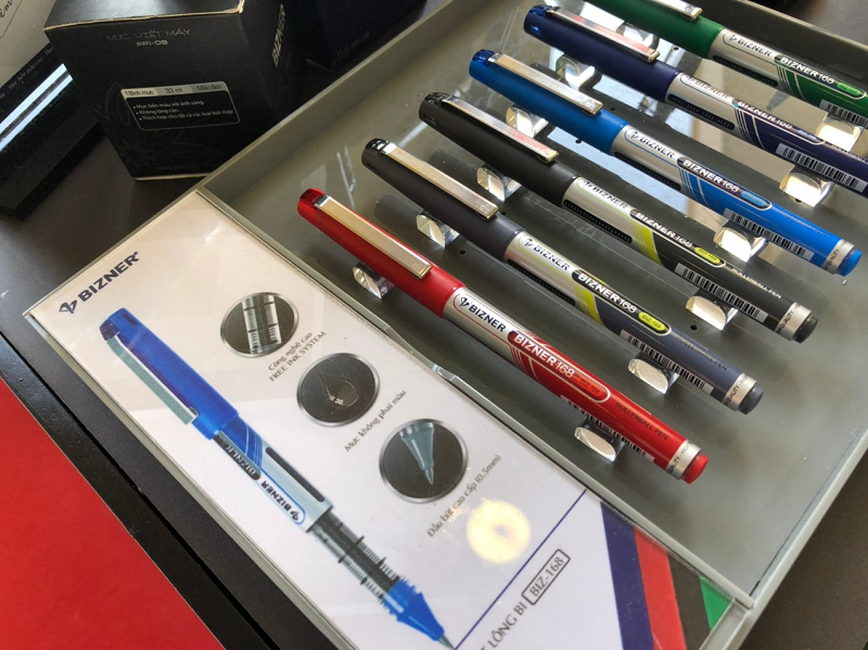 Tại đây, khách tham quan có thể dễ dàng nhìn thấy và trải nghiệm các sản phẩm bút cao cấp, tinh tế. Trong đó có các loại như: BIZNER168, BIZ-WB02, BIZ-01.