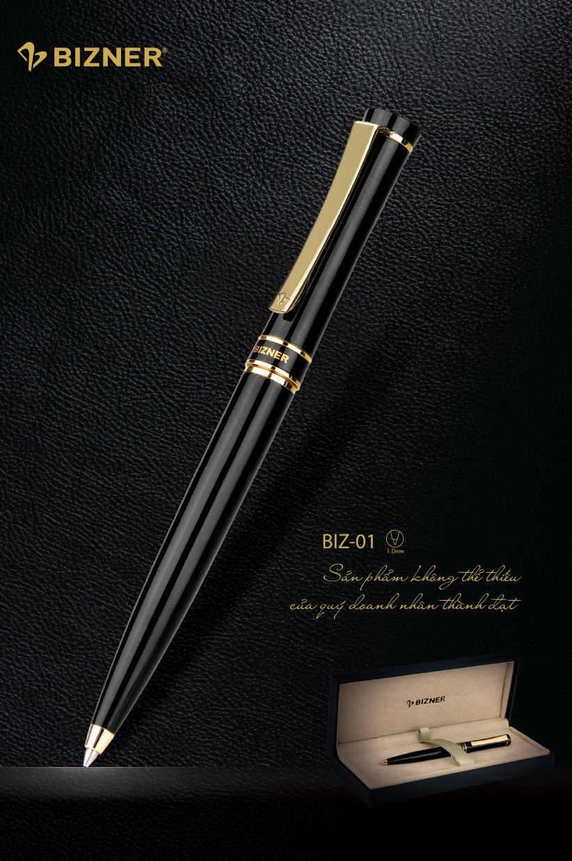 BIZ-01 là loại bút bi được thiết kế dành riêng cho các doanh nhân, nhà khởi nghiệp. Bút được sản xuất trên công nghệ hiện đại, các chi tiết được mạ vàng thật 18k nổi bật, ruột bút jumbo refill BPR-014 nhập khẩu từ Thụy Sỹ. BIZ-01 cho nét viết mềm mại, trơn êm là lựa chọn đáng tin cậy trong mỗi quyết định quan trọng của giới doanh nhân..