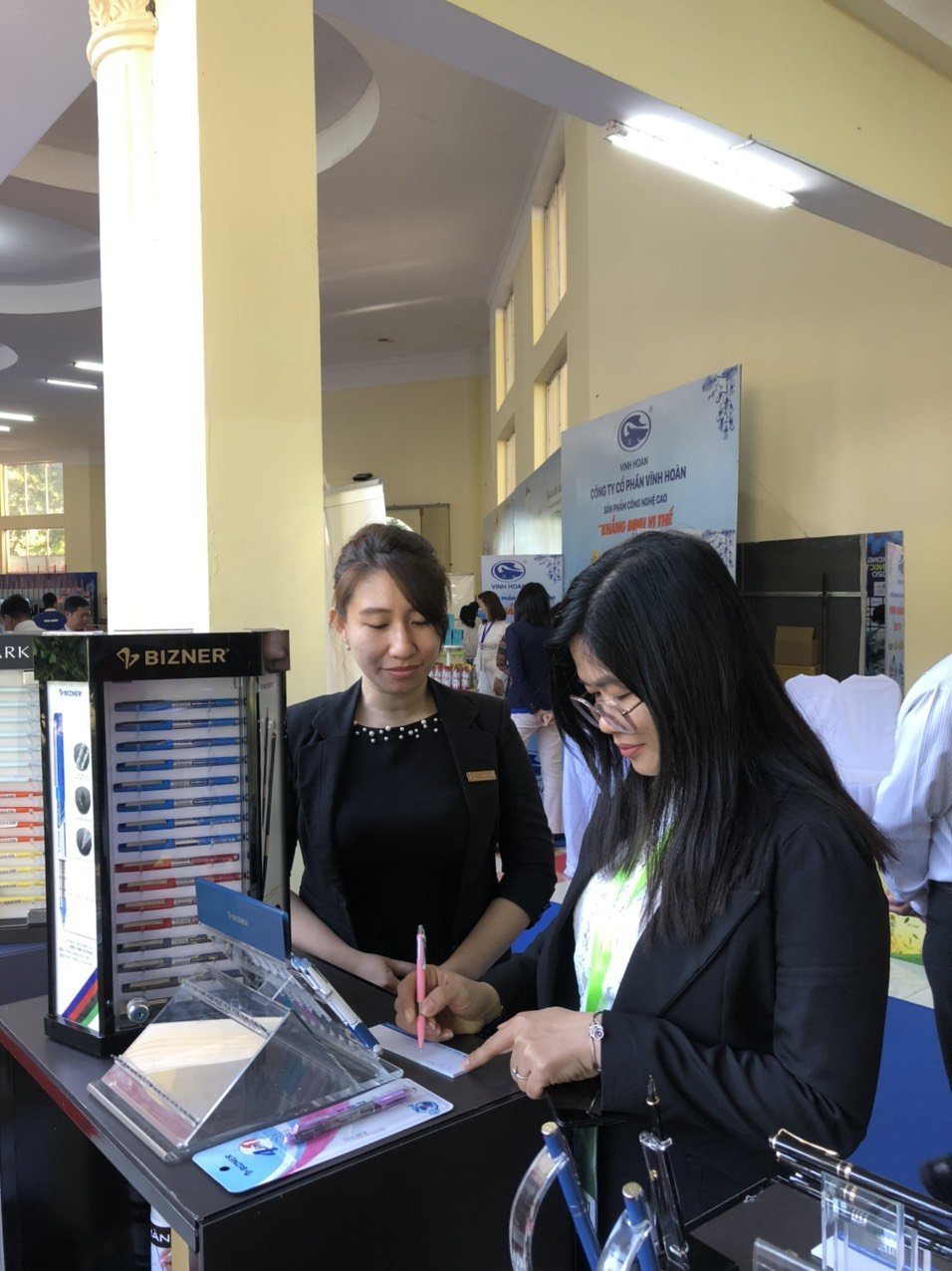 Trong không gian trưng bày các sản phẩm đa dạng của các doanh nghiệp khác nhau, khu vực trưng bày của BIZNER nằm ở một vị trí đẹp, thu hút đông đảo doanh nhân đến tham quan trải nghiệm. BIZNER là một nhãn hàng văn phòng phẩm cao cấp của tập đoàn Thiên Long. Mỗi sản phẩm được tung ra của BIZNER đều trải qua quá trình nghiên cứu dài hạn với ứng dụng công nghệ hiện đại hoặc sử dụng các vật liệu và chi tiết tiên tiến trong từng dòng thiết kế để mang đến sự hoàn hảo cho người dùng.