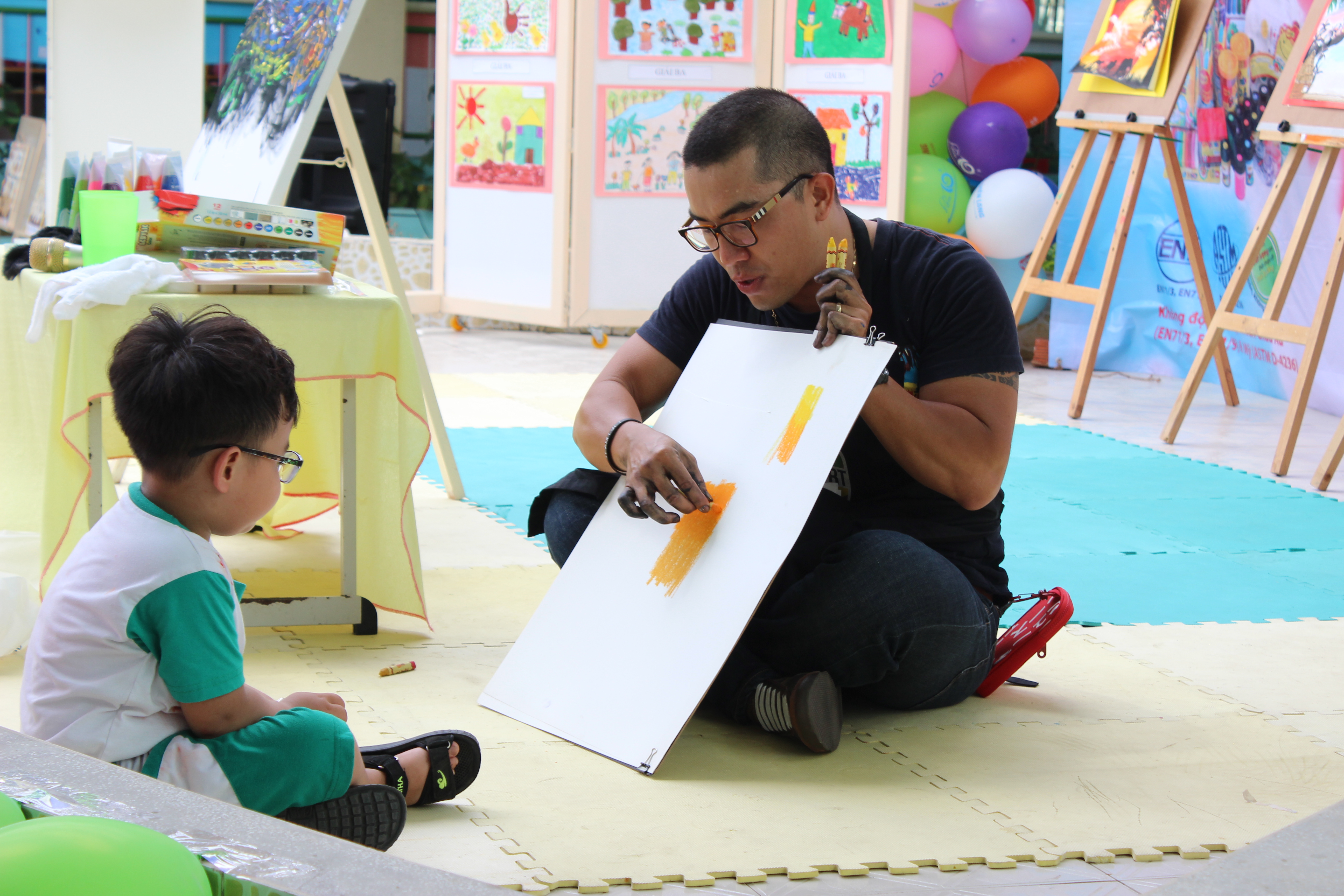 Đồng thời, tại ngày hội, cán bộ quản lý & giáo viên mầm non cùng phụ huynh các trường còn được hướng dẫn cách ứng dụng hòa màu của Oil Pastel, cách tạo bức tranh mềm mại được vẽ bằng màu nước giấy dán keo Handmade Điểm 10 và phương pháp vẽ bằng tay khi chơi với màu Acrylic dành cho trẻ.