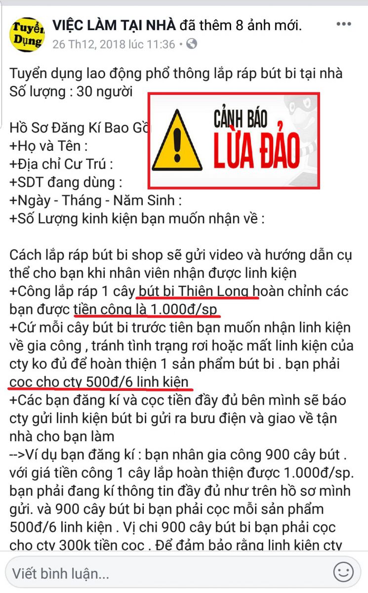 - Tuyệt đối không thực hiện theo hướng dẫn từ các thông tin tìm kiếm đối tác hay tuyển nhân viên gia công lắp ráp bút bi trên các trang mạng, mạng xã hội không chính thống.