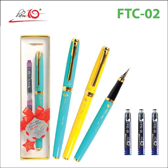 Thị trường đồ dùng năm học mới 2016 - 2017 xuất hiện nhiều sản phẩm thông minh với tính nặng vượt trội, chẳng hạn như bút máy Điểm 10 FTC-02 sử dụng ống mực rời của Thiên Long. Khác với các loại bút máy thông thường, bút FTC - 02 không dùng ruột bút để bơm mực từ lọ mực mà bút này sử dụng ống mực được đóng gói sẵn, cắm vào bút là có thể sử dụng. Đi kèm với bút là các ống mực bút máy FPIC-01 dễ sử dụng. Theo tìm hiểu, ống mực bút máy Điểm 10 có 3 màu mực: xanh, đen, tím. Mỗi ống mực có dung lượng 0,7ml và có thể viết được 10 trang giấy đủ để học sinh sử dụng trong một ngày học.