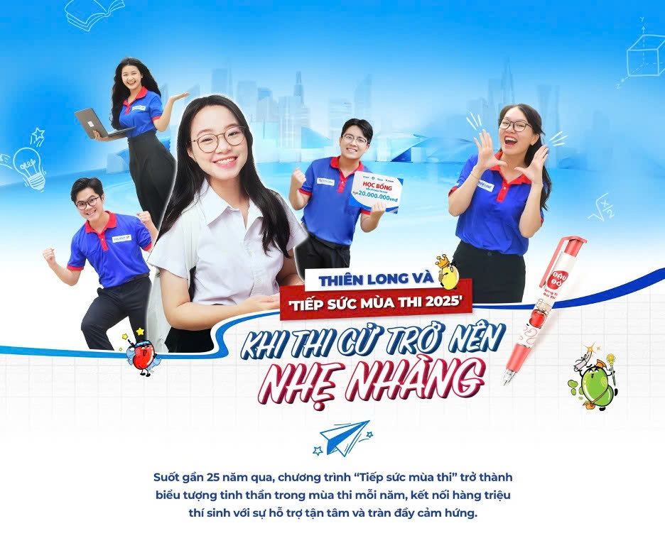 Chương trình được duy trì liên tục trong gần 25 năm, phù hợp với định hướng cốt lõi của Tập đoàn Thiên Long trong việc hỗ trợ giáo dục và phát triển tri thức. Không chỉ cung cấp hỗ trợ hậu cần cho thí sinh, Tiếp sức mùa thi còn lan tỏa thông điệp “học hỏi hạnh phúc trọn đời”, qua đó khẳng định vai trò của doanh nghiệp như một đối tác đồng hành lâu dài cùng giáo dục.