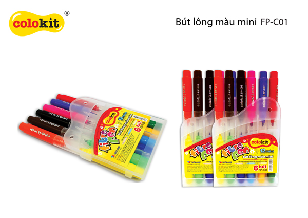 Bộ sản phẩm mỹ thuật, tạo hình Colokit bao gồm: Bút lông màu, Bút lông màu rửa được, Màu nước, Bút sáp màu, Bút sáp dầu, Bút nhựa màu, Sáp nặn, Bút chì màu và Tập tô màu.