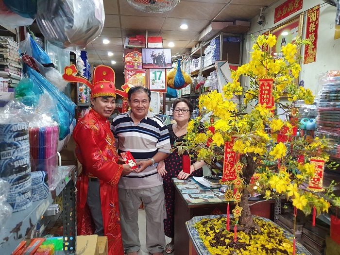 Nhà phân phối và khách hàng vui mừng nhận bao lì xì đầu năm từ các Thần Tài của Thiên Long
