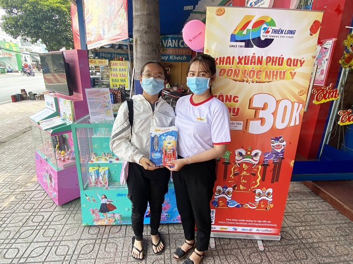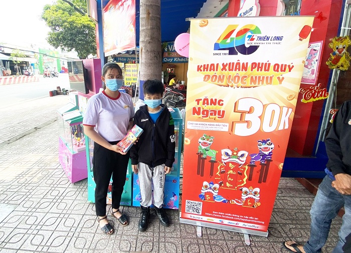 Không chỉ có các nhà phân phối mà người tiêu dùng trên cả nước cũng được Tập đoàn Thiên Long ngẫu nhiên “lì xì đầu năm” tại các điểm trường, chợ,... với voucher giảm giá lên tới 30.000 đồng và có hiệu lực đến ngày 31/3/2021. Điểm đổi voucher sẽ là hơn 700 điểm bán của Thiên Long trên cả nước và người tiêu dùng có thể tham khảo ngay danh sách các điểm đổi Voucher tại website tiepsuctrithuc.vn