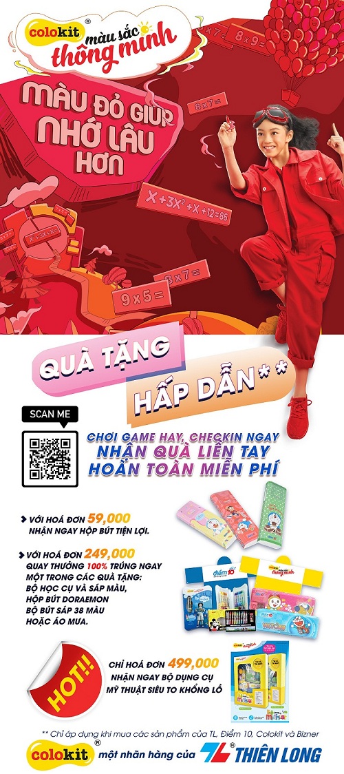Chương trình check-in may mắn với rất nhiều phần quà giá trị đến từ các nhãn hàng của tập đoàn Thiên Long như Điểm 10, Colokit…