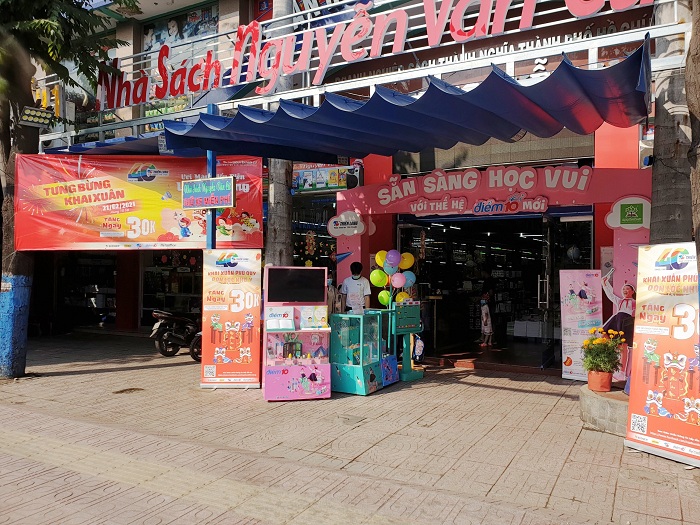 Từ ngày 21/02 – 28/02, tại Nhà sách Nguyễn Văn Cừ 6 (Quận 7, Tp. HCM), Thiên Long “khai xuân” bằng sự kiện hoạt náo với hàng loạt các chương trình hấp dẫn. Ngay khi bước vào không gian mua sắm của nhà sách, khách hàng sẽ ấn tượng và bị thu hút ngay bởi booth hoạt náo tươi sáng. Các banner rực rỡ sắc màu từ nhãn hàng Điểm 10 cùng các chùm bóng bay đáng yêu đã tăng thêm không khí vui vẻ cho những ngày đầu năm tại nhà sách.