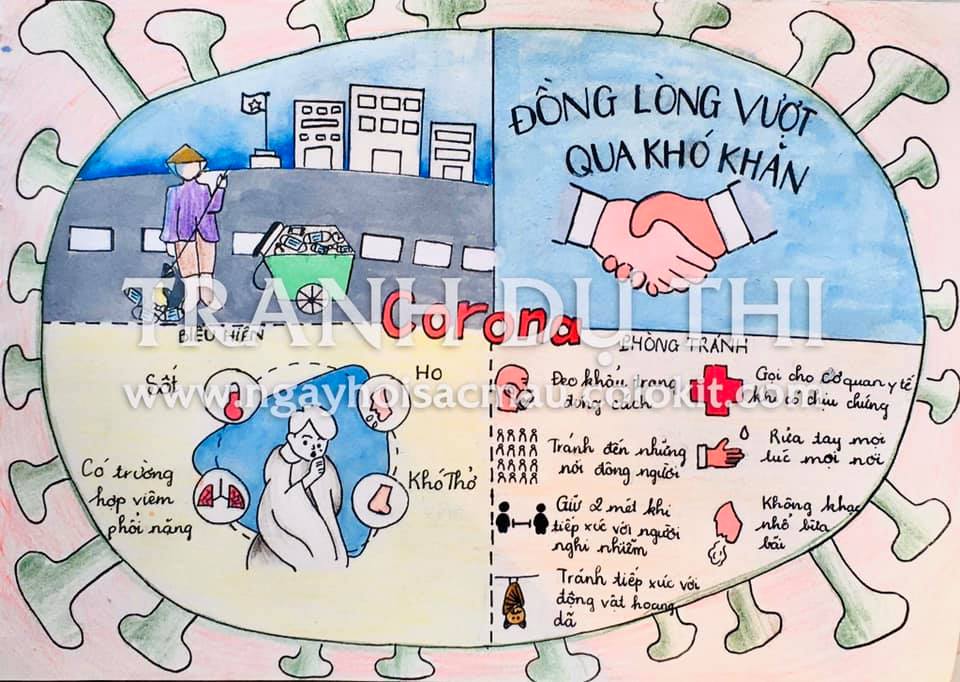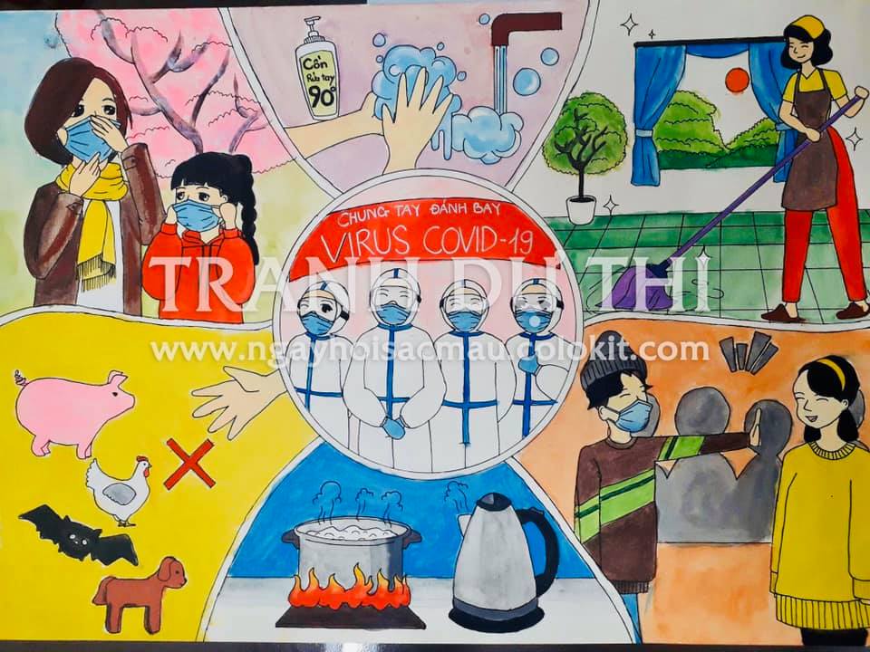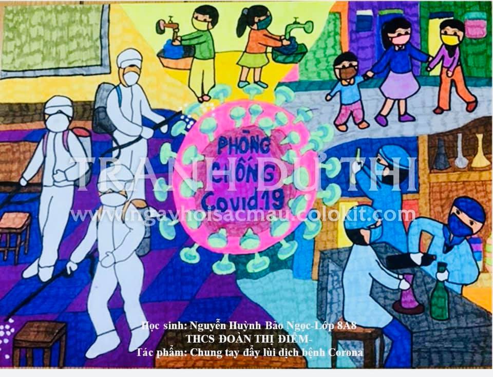 Tác phẩm: “Chung tay đẩy lùi dịch bệnh Corona” - Nguyễn Huỳnh Bảo Ngọc, lớp 8A8 Trường THCS Đoàn Thị Điểm, quận Ninh Kiều, thành phố Cần Thơ