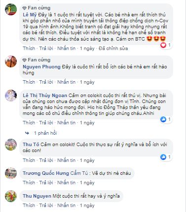 Cuộc thi nhận được rất nhiều bình luận tích cực từ phía cộng đồng mạng. Phụ huynh Lê Mỹ – một fan cứng của chương trình đã bình luận: “Đây là 1 cuộc thi rất tuyệt vời. Các bé nhà em rất thích thú khi góp phần nhỏ của mình truyền tải thông điệp chống dịch n-Cov qua hình ảnh. Không biết tranh có đạt giải hay không nhưng các bé rất thích. Điều tuyệt vời nhất là không hề hạn chế số tranh dự thi. Nên các cháu thỏa sức sáng tạo ạ. Cám ơn BTC!”.