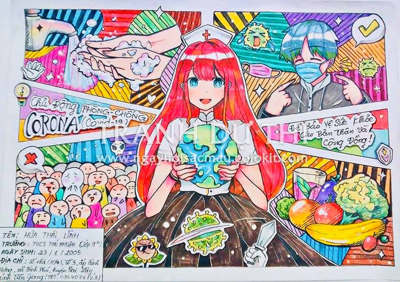 Tác phẩm “Chủ động phòng chống Corona” - Hứa Thái Lĩnh, lớp 9A2 Trường THCS Phú Nhuận, huyện Cai Lậy, tỉnh Tiền Giang