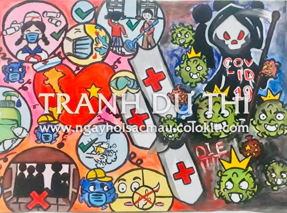 Cuộc thi vẽ tranh thiếu nhi: “Bảo vệ sức khỏe và phòng chống dịch bệnh Covid-19” cũng là một dịp để các bạn nhỏ ghi dấu chính quan điểm của mình trước vấn đề mang tính thời sự cấp thiết, hay có thể nói mỗi bức tranh là một bài văn nghị luận bằng sắc màu, rất đa dạng và sâu sắc.