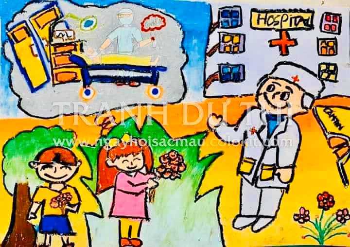 Bên cạnh đó, nhiều em cũng gửi gắm vào tác phẩm của mình nhưng tâm tư, nỗi niềm dành cho các bác sĩ - những “thiên thần áo trắng” đang ngày đêm làm việc chữa trị cho các bệnh nhân.