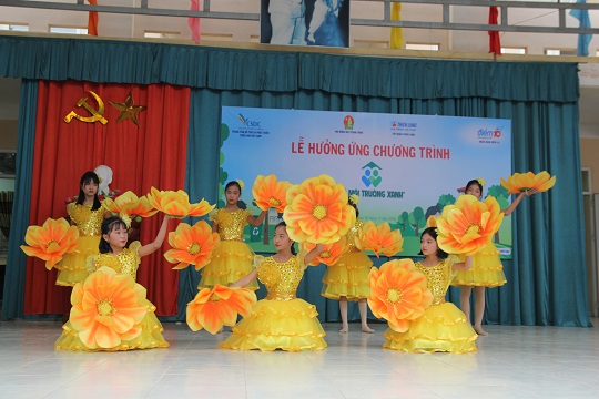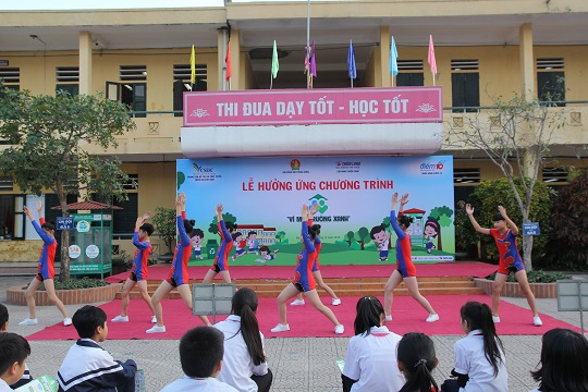Buổi lễ tuyên truyền chìm ngập trong sắc xanh – đỏ vào sáng ngày 26/12 tại trường THCS Trưng Vương – huyện Mê Linh. Chương trình đã diễn ra với các hoạt động vui chơi bổ ích, qua đó lồng ghép những kiến thức cần thiết cho các em về việc “Phân loại rác thải ngay tại nguồn”.