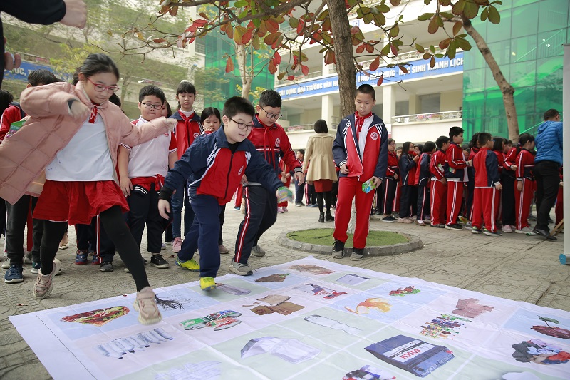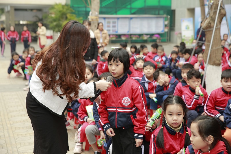 Lễ phát động có sự góp mặt của hơn 600 em học sinh trường Tiểu học Dịch Vọng A (Cầu Giấy, Hà Nội). Các em vô cùng hào hứng khi được nghe chia sẻ về những kiến thức bảo vệ môi trường, phân loại rác thải đúng cách, tái chế rác thải nhựa để góp phần bảo vệ môi trường.