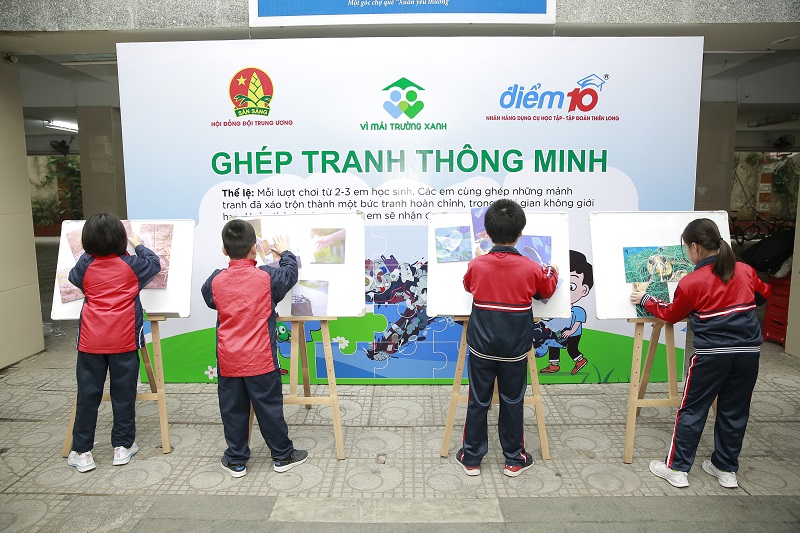Các em vô cùng thích thú và hào hứng khi tham gia trò chơi Ghép tranh thông minh có lồng ghép các thông điệp về môi trường