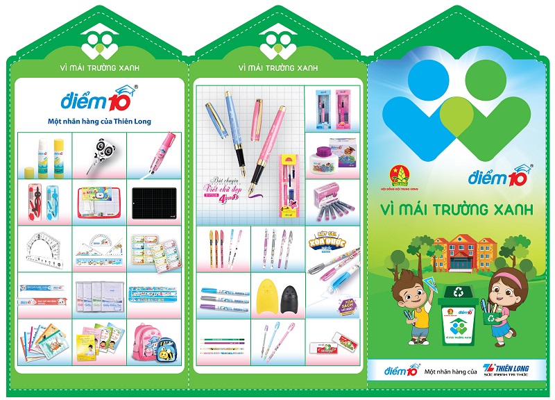 Chương trình Vì Mái Trường Xanh do nhãn hàng dụng cụ học sinh Điểm 10 - một nhãn hàng của Tập đoàn Thiên Long - phối hợp cùng Hội đồng Đội Trung ương tổ chức.