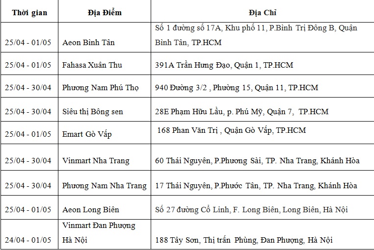 Theo đó, từ ngày 25/4 đến ngày 1/5, Thiên Long xây dựng các gian hàng “Hành trình tri thức” ở các siêu thị, nhà sách, trung tâm thương mại tại các tỉnh/thành như Hà Nội, Khánh Hòa và TP.HCM.