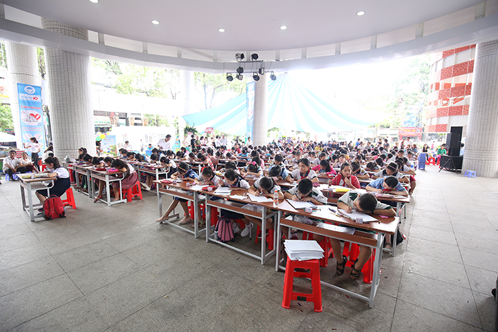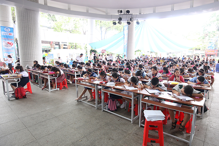 240 em học sinh từ 24 quận/huyện của TP.HCM đã tranh tài tại vòng chung kết liên hoan “Yêu chữ Việt” do Nhà thiếu nhi TP.HCM phối hợp cùng nhãn hàng Điểm 10 của Tập đoàn Thiên Long tổ chức.