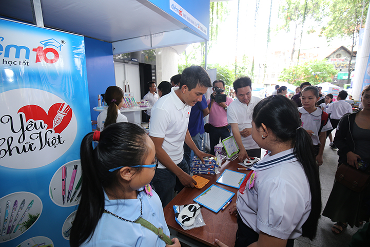 Đến với liên hoan “Yêu chữ Việt”, các bạn học sinh còn được tham gia nhiều trò chơi hấp dẫn cùng nhãn hàng Dụng cụ học tập Điểm 10.