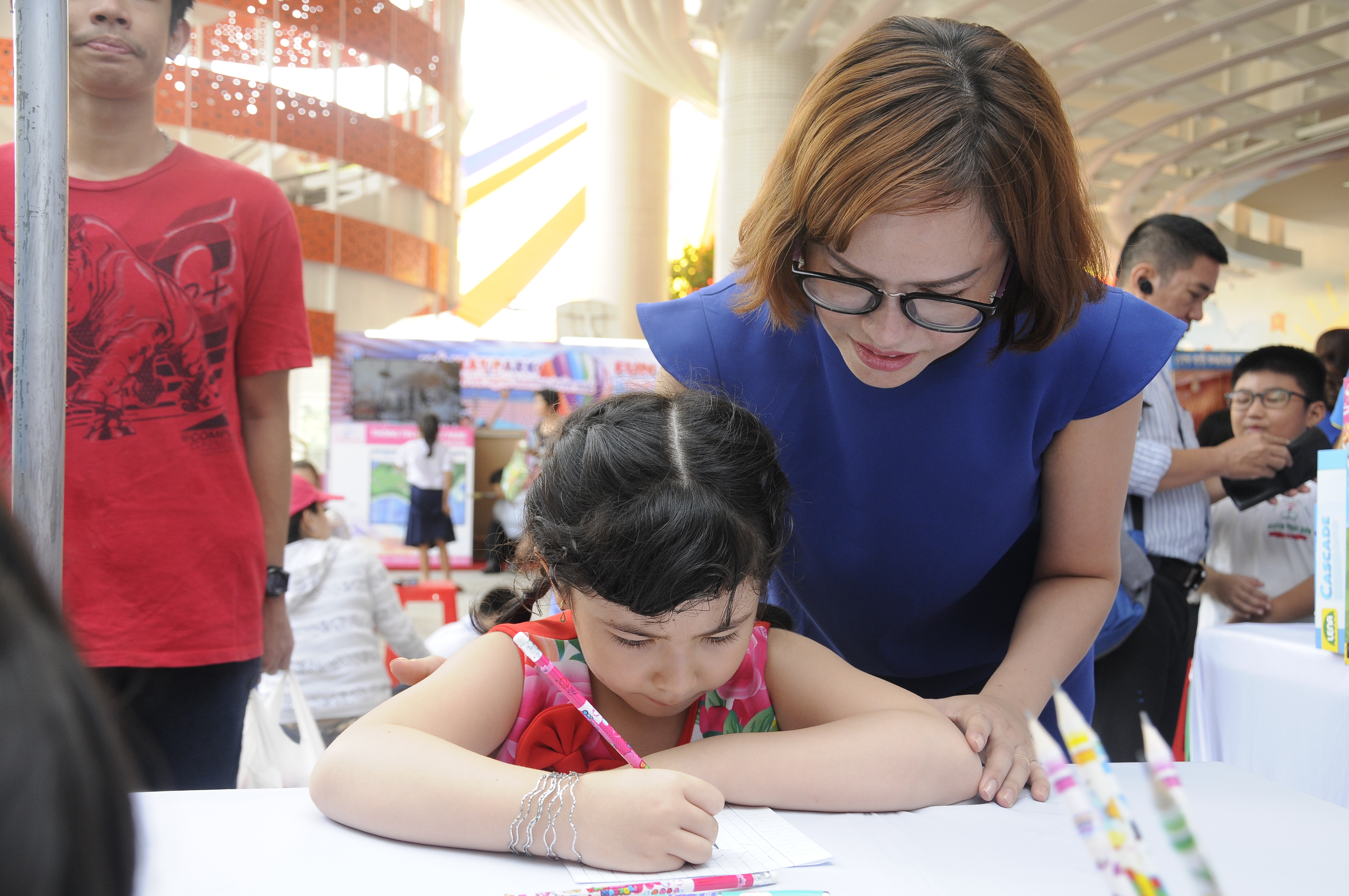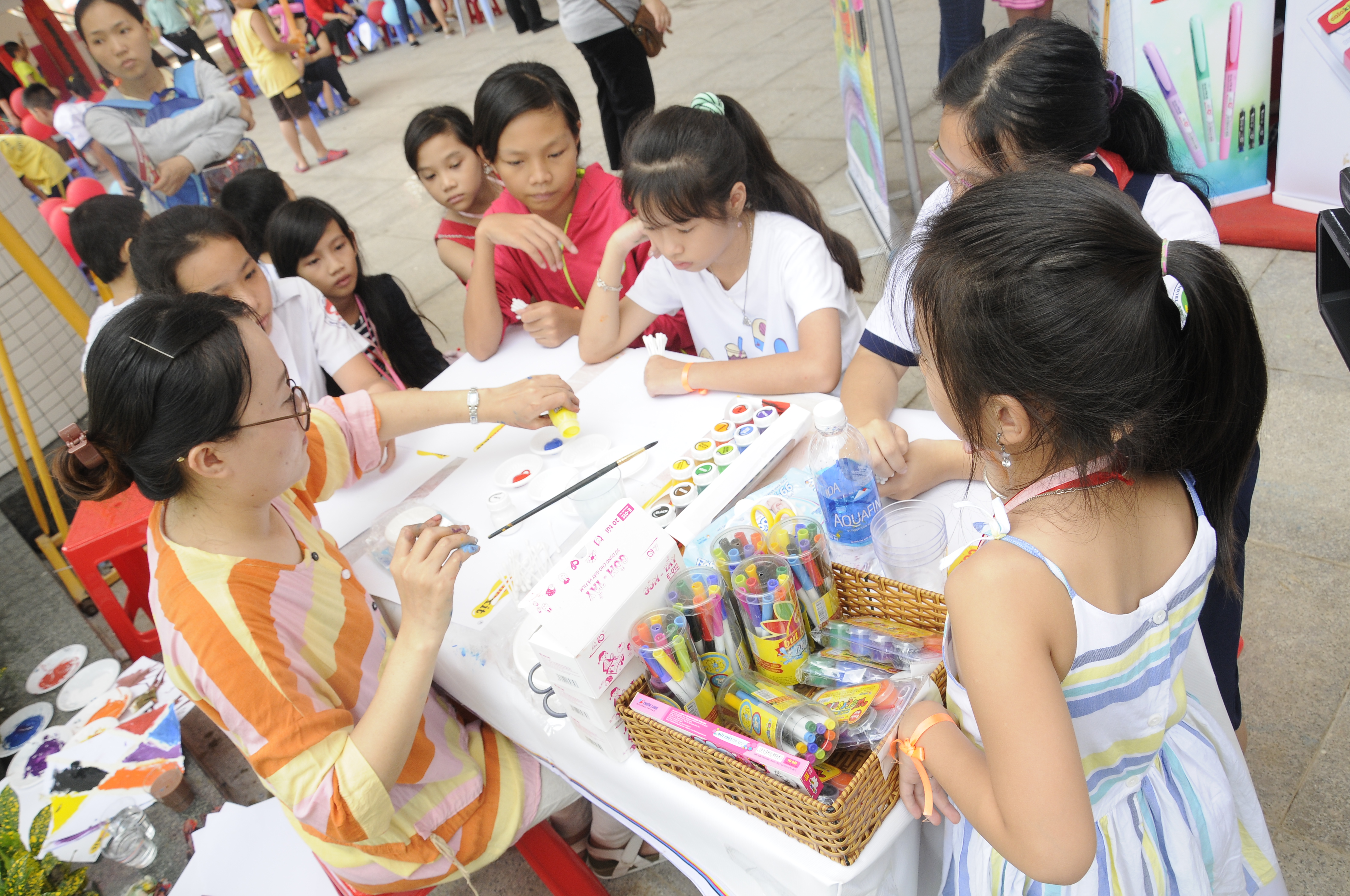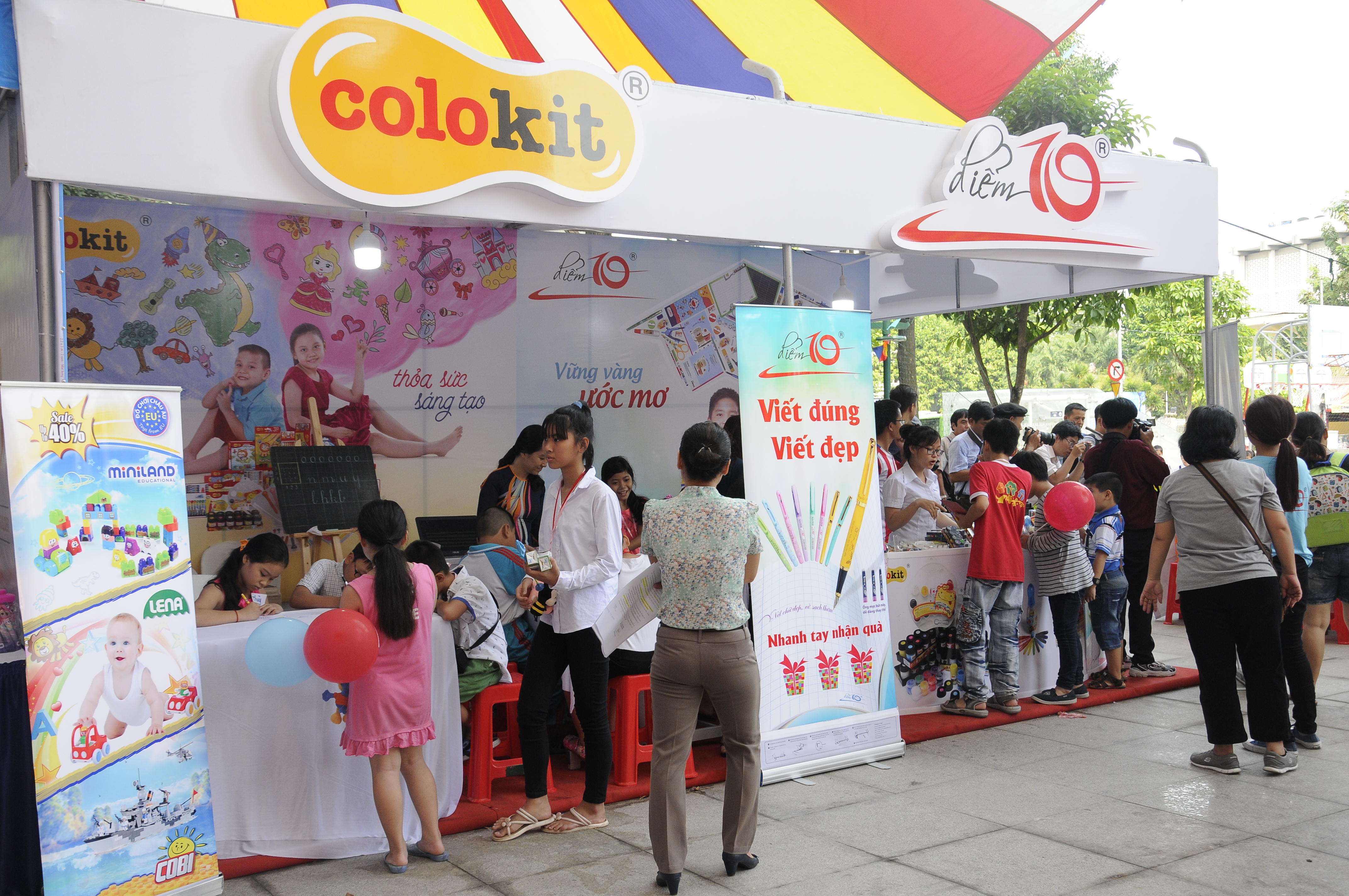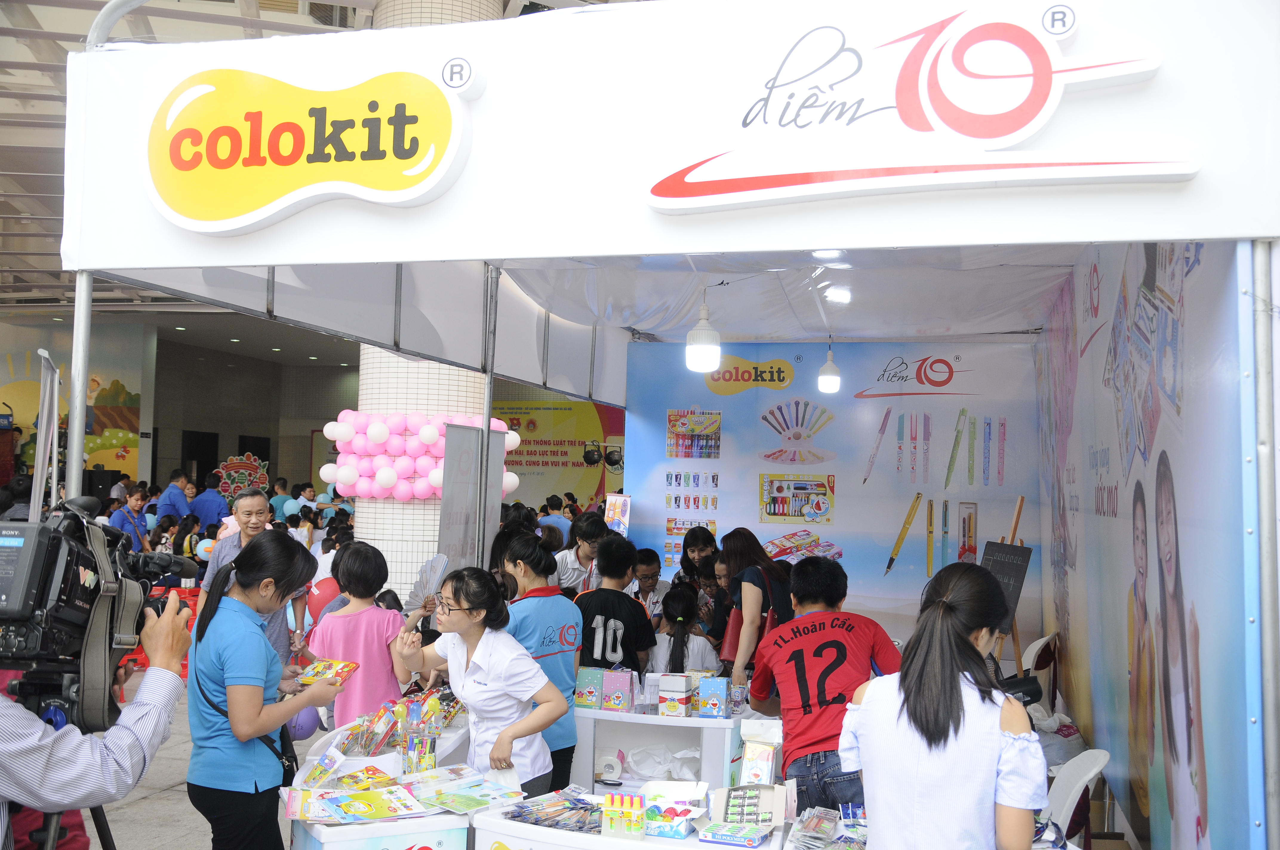 Đến với khu vực trưng bày của nhãn hàng Dụng cụ Học tập Điểm 10 và Dụng cụ Mỹ thuật Colokit, các em thiếu nhi thỏa thích tham gia các hoạt động vừa thú vị vừa kích thích sự sáng tạo của trẻ. Đáng chú ý, chương trình còn có sự hỗ trợ của các chuyên gia uy tín nhằm định hướng và khơi gợi sự sáng tạo cho các bé.