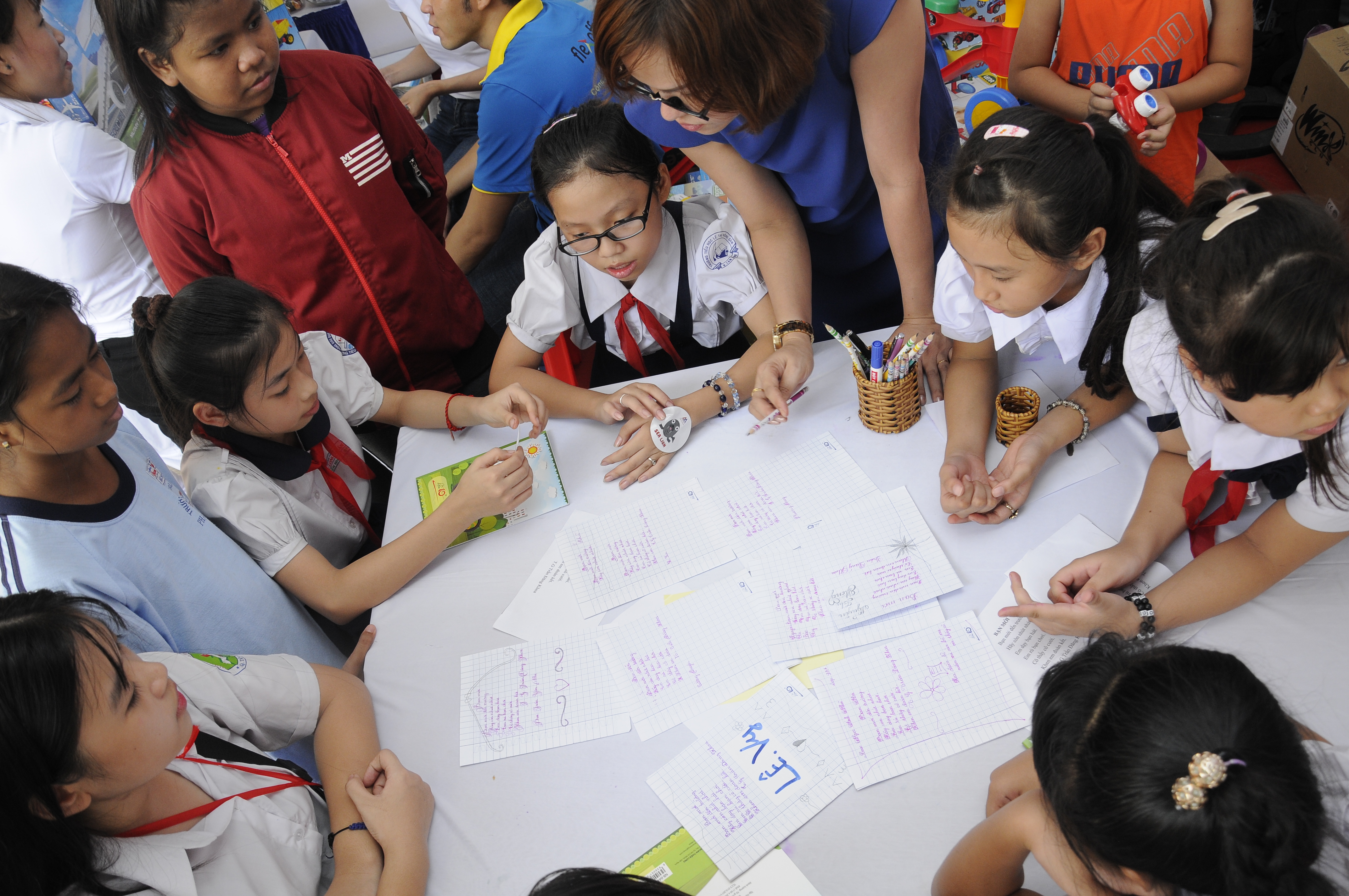 Hoạt động tham gia luyện viết chữ đẹp với bút máy Điểm 10 thu hút sự tham gia của nhiều em nhỏ. Qua hoạt động này, các em nhỏ đã được học thêm về cách cầm bút, tư thế ngồi viết, cách bảo quản bút máy hợp lý.