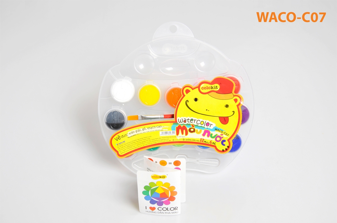 Các giáo viên và phụ huynh có thể tham khảo các sản phẩm có nhiều tính năng nổi bật để ứng dụng trong hoạt động sáng tạo như sau: • Màu nước WACO-C07: Màu tươi sáng, đúng chuẩn màu mỹ thuật. Màu mềm mịn và đều. Độ hòa tan khi phối màu cao.