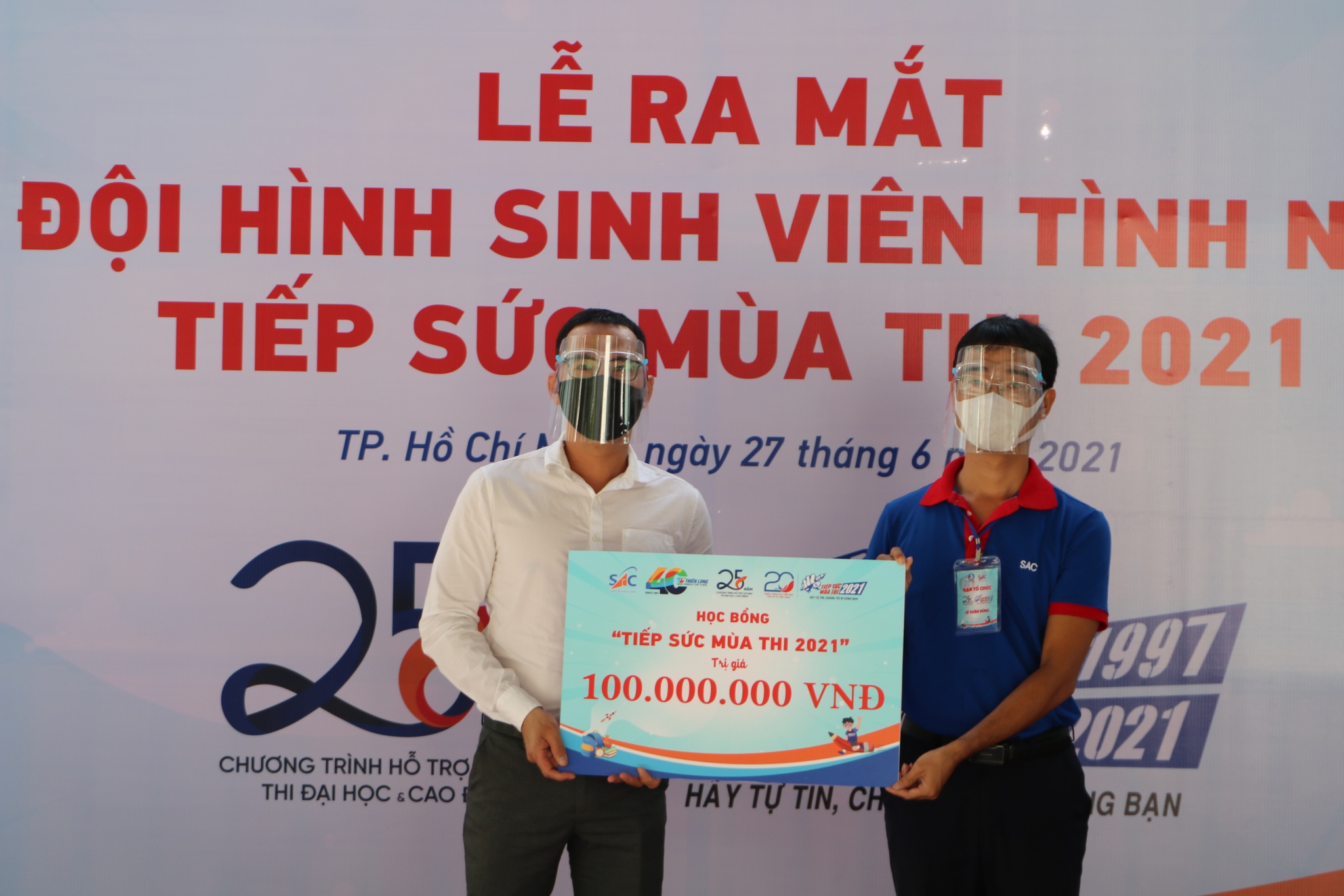 Tại lễ ra mắt Các đội hình tình nguyện Tiếp sức mùa thi 2021, anh Giang Chí Thuận, Trưởng phòng truyền thông Tập đoàn Thiên Long, đã chuyển 50 suất học bổng Tiếp sức mùa thi với tổng trị giá 100 triệu đồng cho anh Lê Xuân Dũng, Giám đốc Trung tâm Hỗ trợ học sinh, sinh viên TP.HCM, để tặng lại cho thí sinh có hoàn cảnh đặc biệt khó khăn trong kỳ thi tốt nghiệp THPT năm 2021. Mỗi suất học bổng bao gồm 2 triệu đồng tiền mặt và một bộ sản phẩm dụng cụ học tập cần thiết, kèm theo thông điệp “Tự tin thi tốt” gửi gắm đến thí sinh, giúp các sĩ tử có tinh thần lạc quan trước giờ vượt vũ môn.