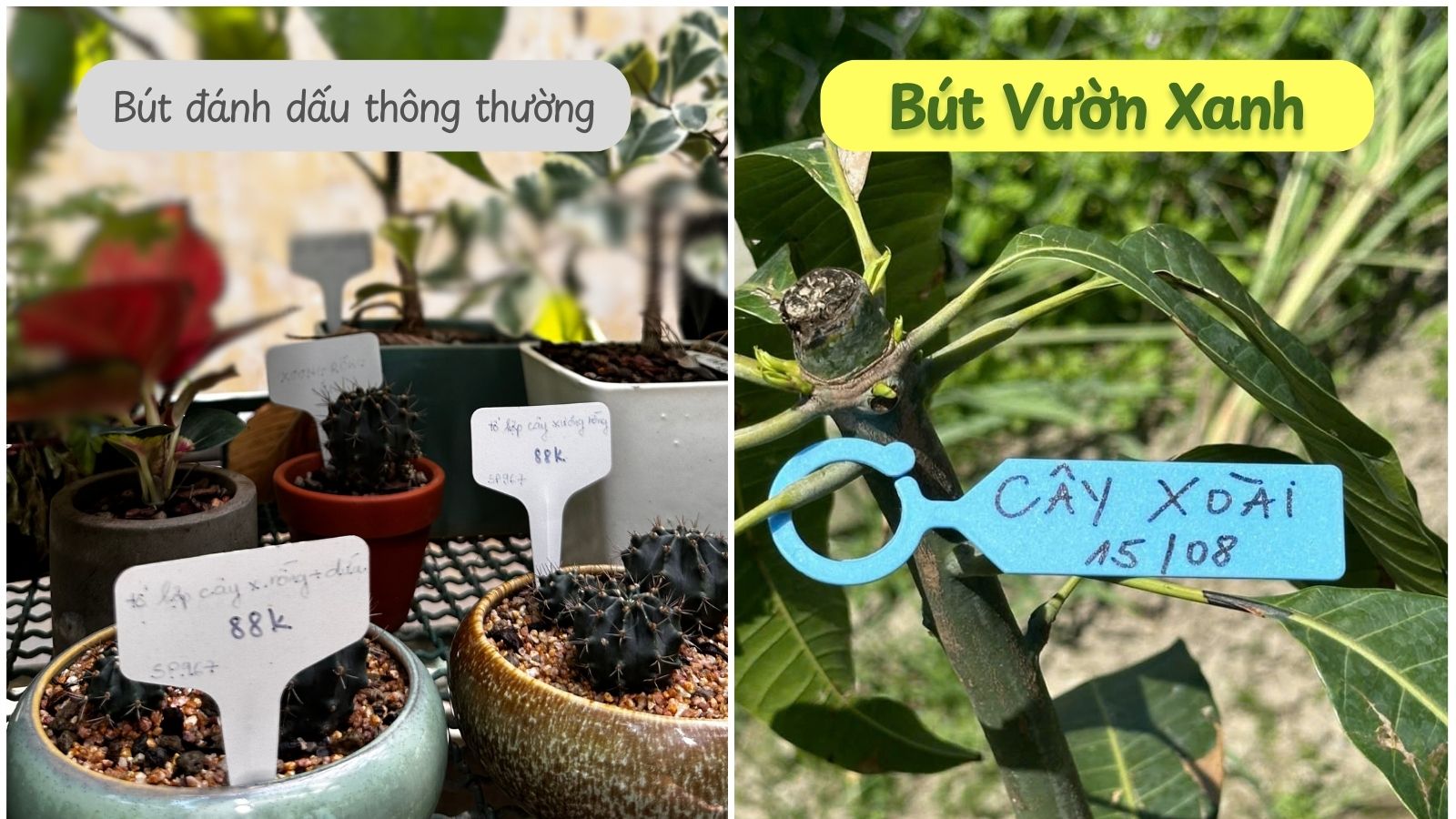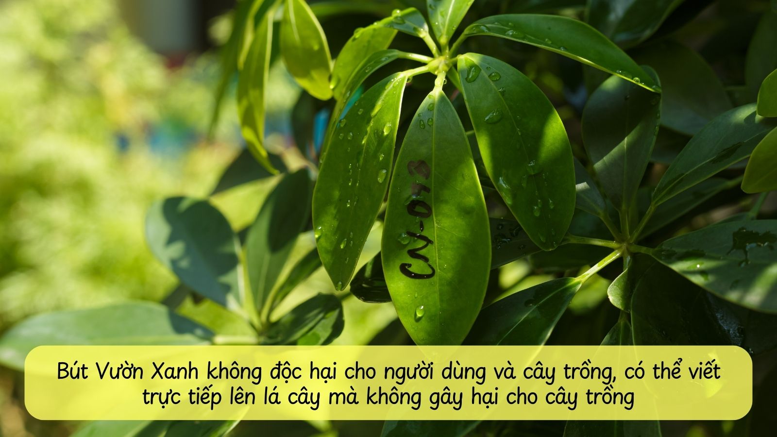 Đặc biệt, ngay cả khi bút bị tiếp xúc với mưa hoặc nước tưới cây, mực của Bút Vườn Xanh vẫn giữ được độ rõ nét và không bị lem. Đây là điểm vượt trội rõ ràng so với bút đánh dấu thông thường, vốn dễ bị nhòe và mất nét khi gặp độ ẩm cao. Khả năng này khiến Bút Vườn Xanh trở thành công cụ không thể thiếu cho việc ghi chú ngoài trời trong môi trường nông nghiệp.