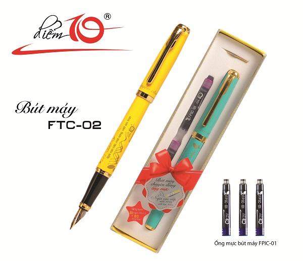 Bút máy sử dụng ống mực: Bút máy Điểm 10 FTC-02 sử dụng ống mực rời của Thiên Long là một sản phẩm mới có nhiều ưu điểm thích hợp với các bé. Khác với các loại bút máy thông thường, bút FTC–02 không dùng ruột bút để bơm mực từ lọ mực mà bút này sử dụng ống mực được đóng gói sẵn, cắm vào bút là có thể sử dụng tiện lợi. Với tính năng này, phụ huynh không còn những nỗi lo bị đổ mực, lem bẩn tay, quần áo của trẻ, những rắc rối do phải bơm mực. Đi kèm với bút là các ống mực bút máy FPIC-01. Mỗi ống mực có dung lượng 0,7 ml và có thể viết được 10 trang giấy đủ để học sinh sử dụng trong một ngày học.