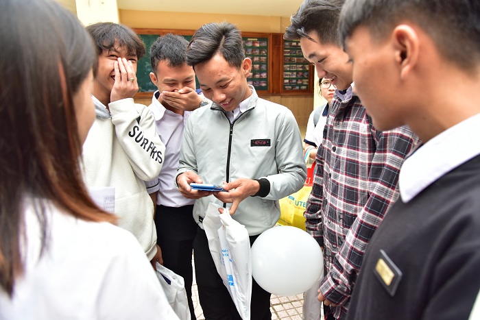 Đại diện Ban tổ chức trao tặng những chiếc máy tính, trao tặng niềm vui cũng như lời chúc đến các sĩ tử may mắn nhất