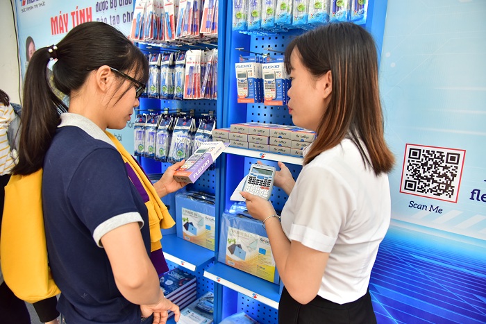 Đến với ngày hội, Tập đoàn Thiên Long cùng nhãn hàng FlexOffice đã mang tới những sản phẩm thiết thực và chất lượng, trong đó nổi bật là chiếc máy tính khoa học mang tính đột phá – máy tính Flexio Fx590VN.