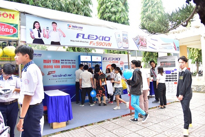 Hân hạnh là một trong những đơn vị vẫn luôn đồng hành cùng chương trình Tư vấn mùa thi qua các năm, đến với ngày hội lần thứ 22 này, bên cạnh việc mang đến những sản phẩm là những dụng cụ học tập thiết thực, phục vụ cho việc học tập và thi cử, Thiên Long còn đặc biệt “trình làng” chiếc máy tính khoa học đầu tiên của nhãn hàng FlexOffice – chiếc máy tính Flexio Fx590VN với khẩu hiệu là “Đồng Minh Tin Tưởng, Tự Tin Vững Bước”.