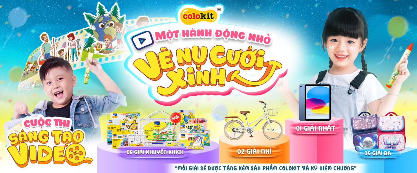 (*) Video có xuất hiện sản phẩm Colokit sẽ là điểm cộng cho tác phẩm của Thí sinh. Ba mẹ đặt mua sản phẩm Colokit để tham gia cuộc thi tại đây: