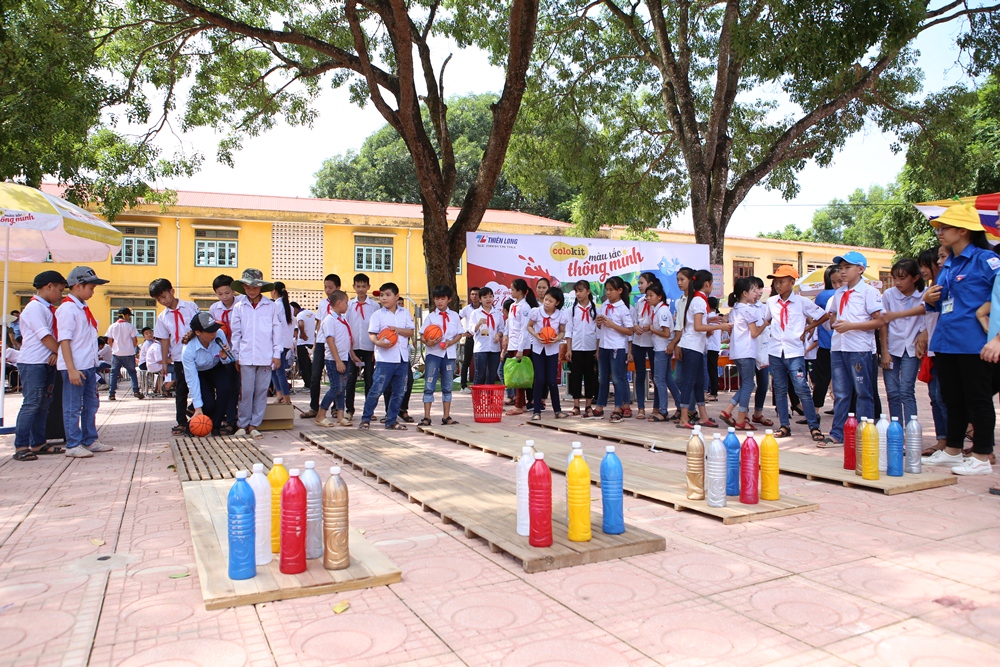 Hoạt động “Chuyền bóng bằng lưng” và “Bowling sắc màu” thu hút đông đảo các em cùng tham gia.