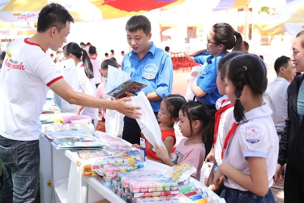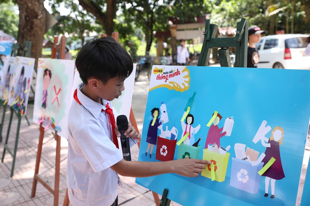 Các em háo hức đổi quà sau khi tham gia vui chơi trọn vẹn các trò chơi tại Ngày hội sắc màu.