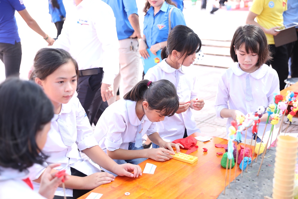 Bên cạnh hoạt động vẽ tranh, các bé thiếu nhi còn có cơ hội được tham gia các trò chơi vui nhộn của ngày hội, như là: Chuyền bóng bằng lưng; Bowling sắc màu; Bịt mắt vẽ tranh; Tìm điểm khác nhau giữa các bức tranh… Đặc biệt, các bé còn được trải nghiệm 02 hoạt động mới mẻ đó là “Nặn tò he” và tham gia tô màu với “Tập tô màu thông minh 4D” trên thiết bị máy tính bảng.