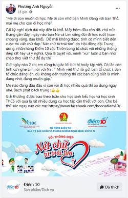 Ca sĩ Nguyễn Phương Anh viết tâm sự trên Fanpage: “Mẹ ơi con muốn đi học. Mẹ ơi con nhớ bạn Đăng Minh với bạn Thỏ, mai mẹ cho con đi học nhé.