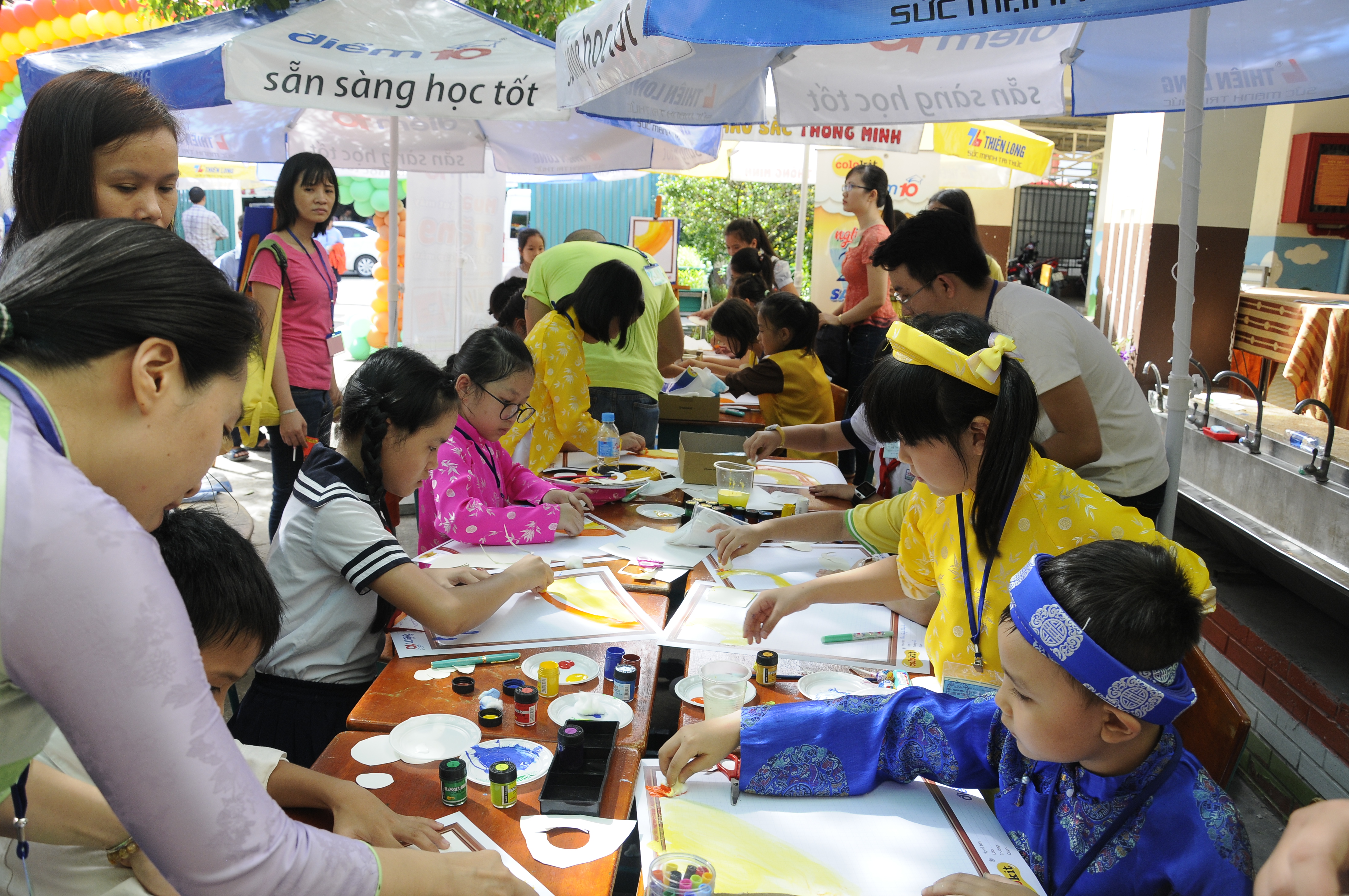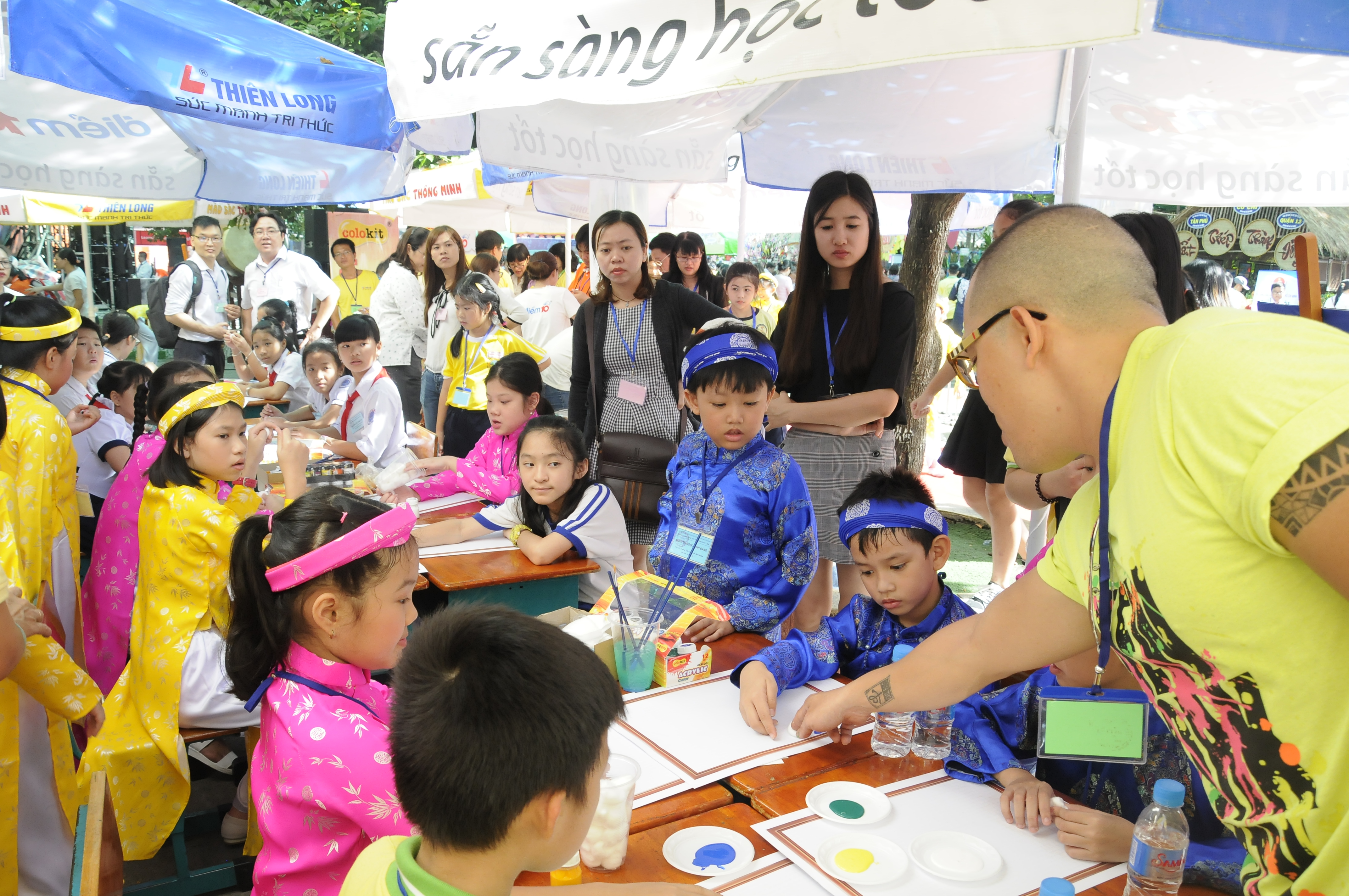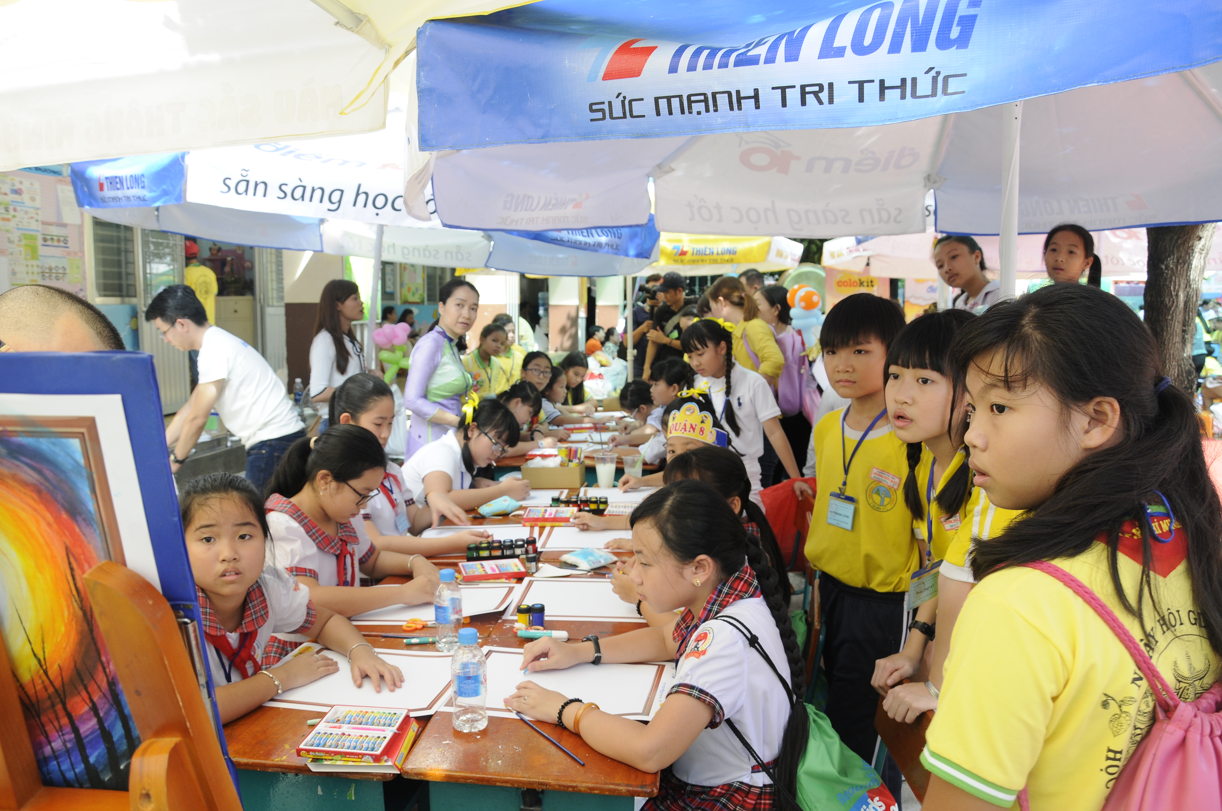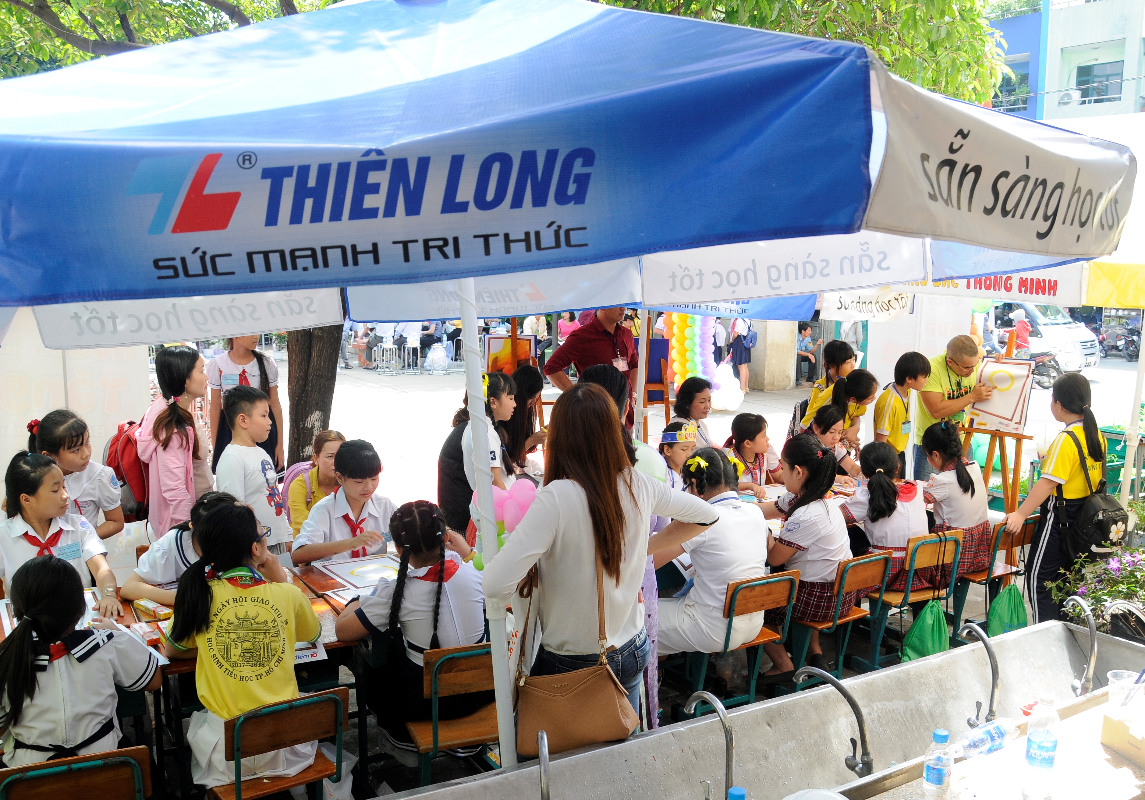 Không chỉ mang đến niềm vui, ngày hội còn trang bị cho các học sinh tiểu học nhiều kiến thức và kĩ năng bổ ích. Trong đó, một trong số những hoạt động thu hút sự tham gia đông đảo của các học sinh tiểu học là nghệ thuật 2V do Thiên Long tổ chức.