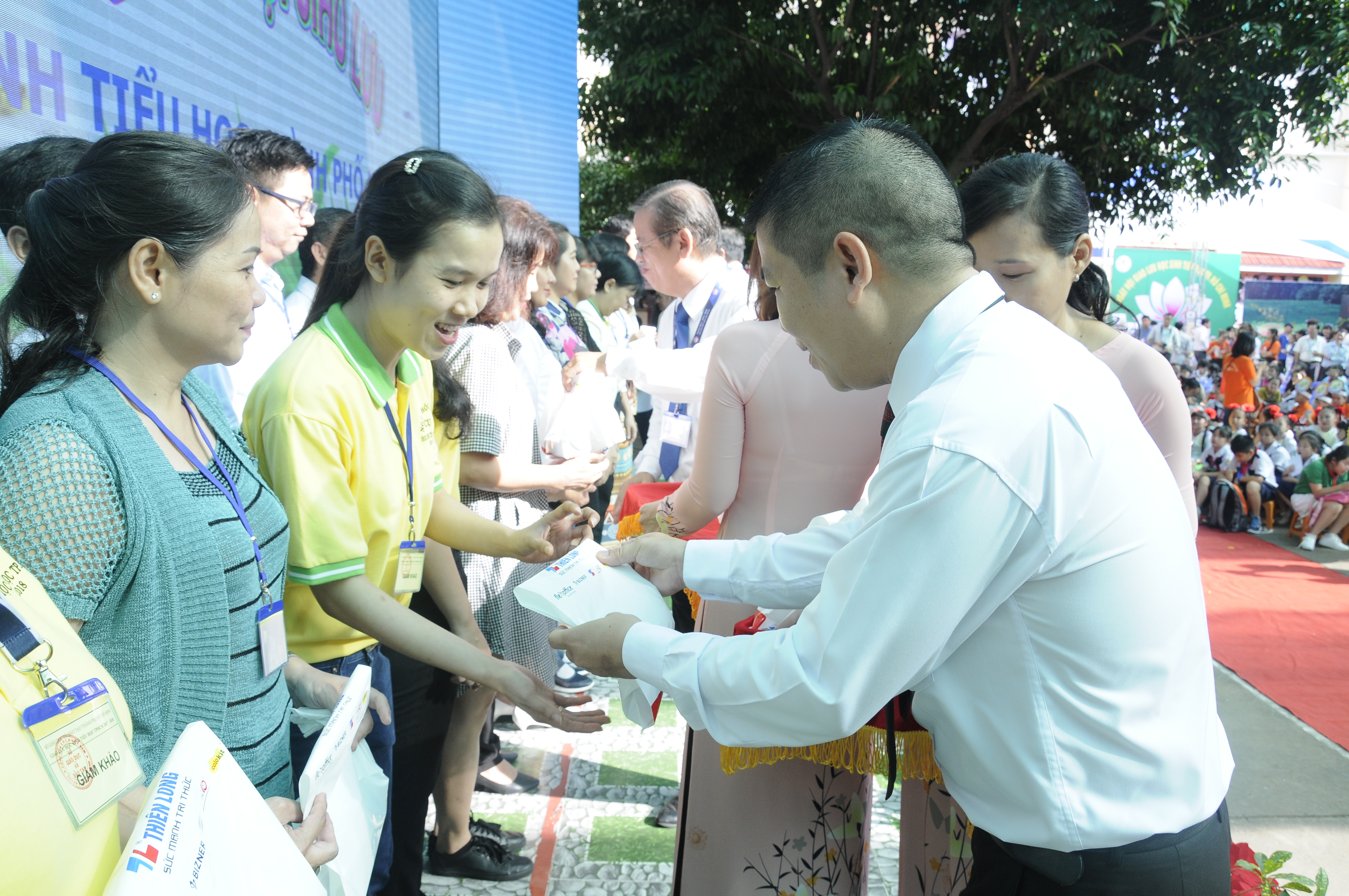 Ông Trịnh Văn Hào – Giám đốc Marketing, Tập đoàn Thiên Long tham dự và trao quà giao lưu với các GV trong Ngày hội “Em yêu thành phố của em”