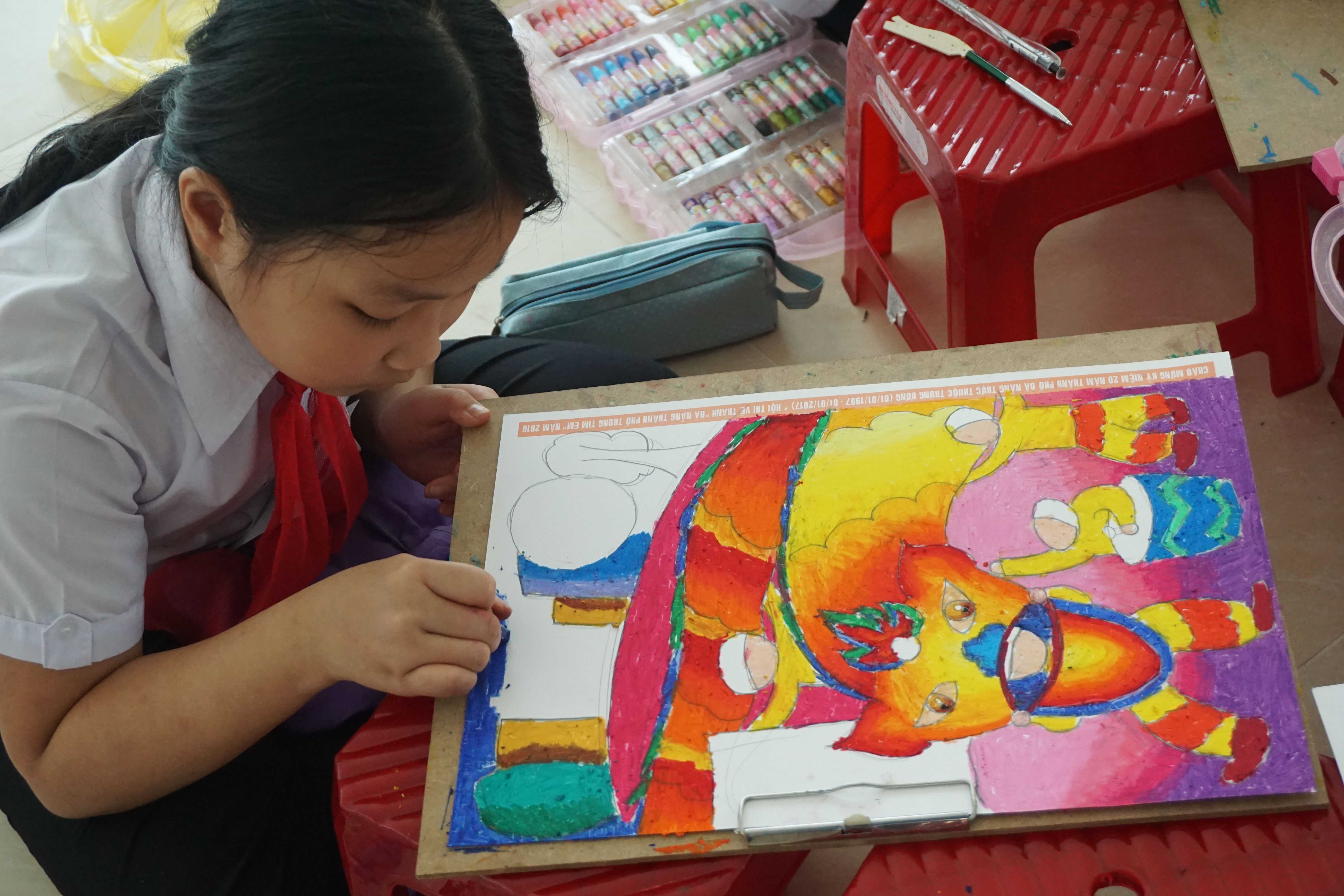 Với sự hỗ trợ đắc lực của các sản phẩm bút sáp màu, bút màu nước từ nhãn hàng Colokit của Thiên Long, hơn 500 em thiếu nhi Đà Nẵng đã hoàn thành những bức tranh đầy màu sắc và ý nghĩa trong hội thi vẽ tranh thiếu nhi Đà Nẵng với chủ đề “Đà Nẵng trong trái tim tôi”.