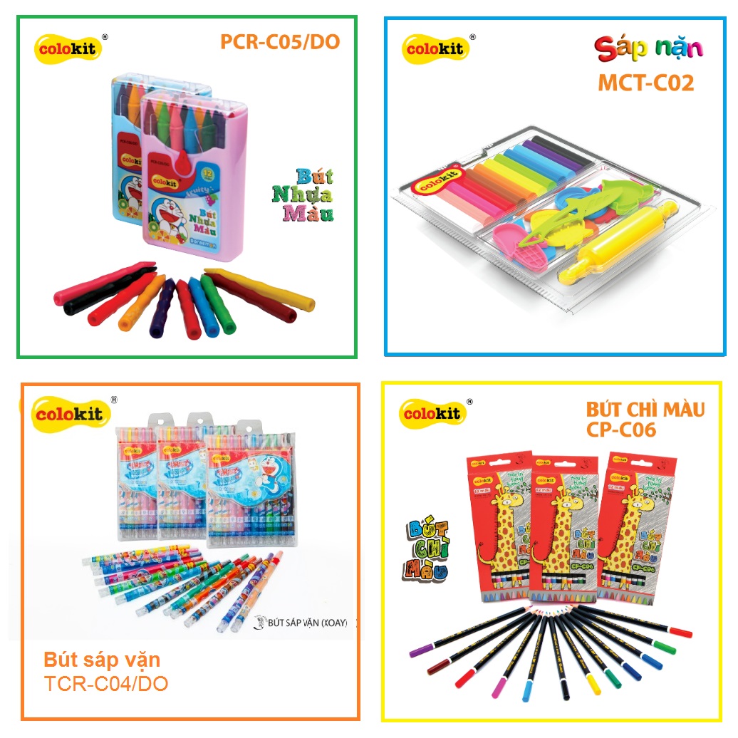 Colokit là nhãn hàng đại diện cho dòng sản phẩm Dụng cụ Mỹ thuật của Thiên Long. Colokit bao gồm các sản phẩm phục vụ cho bộ môn mỹ thuật, sáng tạo như sáp nặn, sáp màu, chì màu, màu nước,… không độc hại cho người sử dụng và thân thiện với môi trường, màu sắc đa đạng, tiện dụng giúp các bạn nhỏ thỏa sức sáng tạo và phát triển tư duy. Các sản phẩm mang nhãn hiệu Colokit an toàn, không độc hại, đạt tiêu chuẩn chất lượng cao của Châu Âu EN 71/3… đã và đang được các phụ huynh tin tưởng đón nhận. |