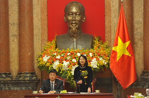 Phó Chủ tịch nước Đặng Thị Ngọc Thịnh vừa có cuộc gặp mặt 42 giáo viên tiêu biểu vùng biển đảo có nhiều đóng góp cho sự nghiệp giáo dục và đào tạo, được tuyên dương trong chương trình “Chia sẻ cùng thầy cô” năm 2016, tại Phủ Chủ tịch.