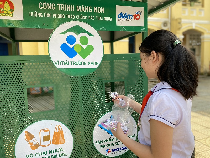 Chưa dừng lại ở đó, tham gia “Vì mái trường xanh”, các em còn có thể biến rác thành học bổng dành tặng cho các bạn học sinh nghèo vượt khó, có ý chí phấn đấu trong học tập ngay tại trong trường của mình. Theo đó, các em cùng nhau phân loại rác thải ngay tại trường học, bao gồm rác thải nhựa tái chế như túi nhựa, hộp nhựa, hộp sữa… và các sản phẩm Thiên Long đã qua sử dụng.