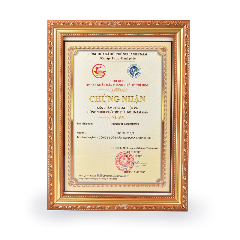 Ngày 13/1 vừa qua, 03 nhóm sản phẩm của Thiên Long vinh dự đón nhận danh hiệu “Sản phẩm công nghiệp và công nghiệp hỗ trợ tiêu biểu thành phố Hồ Chí Minh năm 2020” trong tổng số 92 sản phẩm thuộc 56 doanh nghiệp trên địa bàn thành phố.