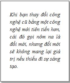Thế nhưng có một điều chắc chắn là nếu không đổi mới sáng tạo, doanh nghiệp sẽ rất khó để tồn tại trong môi trường đầy cạnh tranh hiện nay.